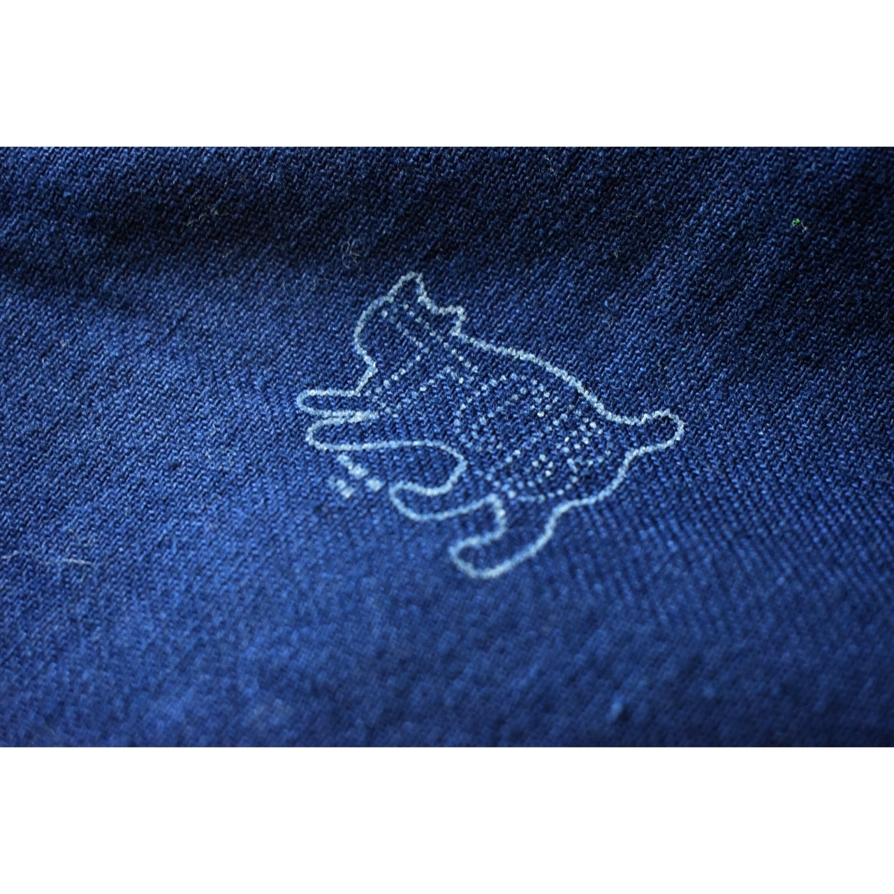 それを現在でも同じ方法で作る事が出来たのだから山陽染工さんには感謝しかなく、コストの事を考えたら生地の裏側にプリントするのは躊躇したのですが、最終的にはウズウズしてBootsの代わりに猫が居る。着用してしまうと関係無いんだけど、着用する度に目に入る。そんな所もこの生地の魅力の一つなのかもしれません。