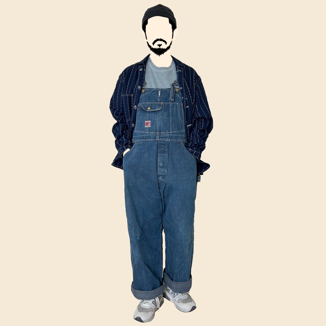 デニムジャケットとは、サイズ感が違い、カバーオールのサイズ感がより大きいです。TCBのデニムジャケットと同サイズでという選び方ですと、かなり大きめのサイズになります。