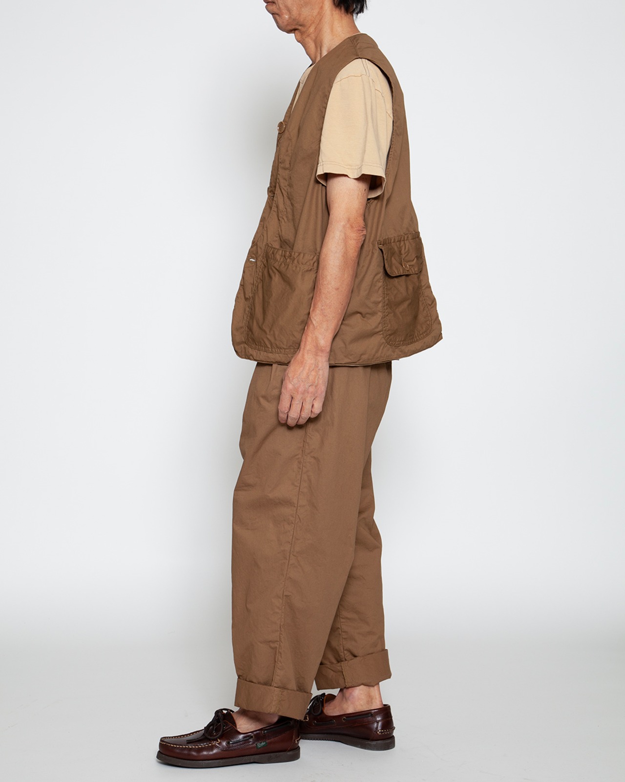 一番の特徴ともなるハンティングシーン由来のポケットの数々は鞄を持たない、身軽な大人の日常着としても活躍してくれます。バンダナやスマートフォン、ちょっとした小物を詰め込んで、「手ぶら」で街へ出かけることが出来ます。
