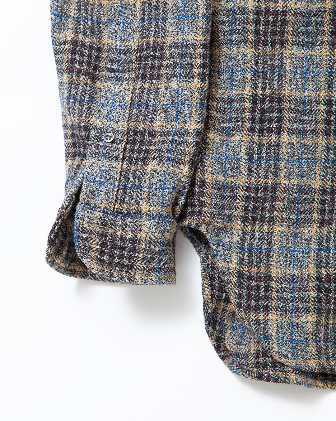 3 色の糸から1本の糸を撚った「三つ杢」糸を使用したコットンツイードシリーズ「Clo- Mor(クロモア)」。深みのあるメランジ感が、まるでウールのような上質感を醸し出す中 肉厚素材のチェック生地です。表面に軽く起毛加工を施し、あたたかみのあるルックスと 柔らかさに仕上げています。