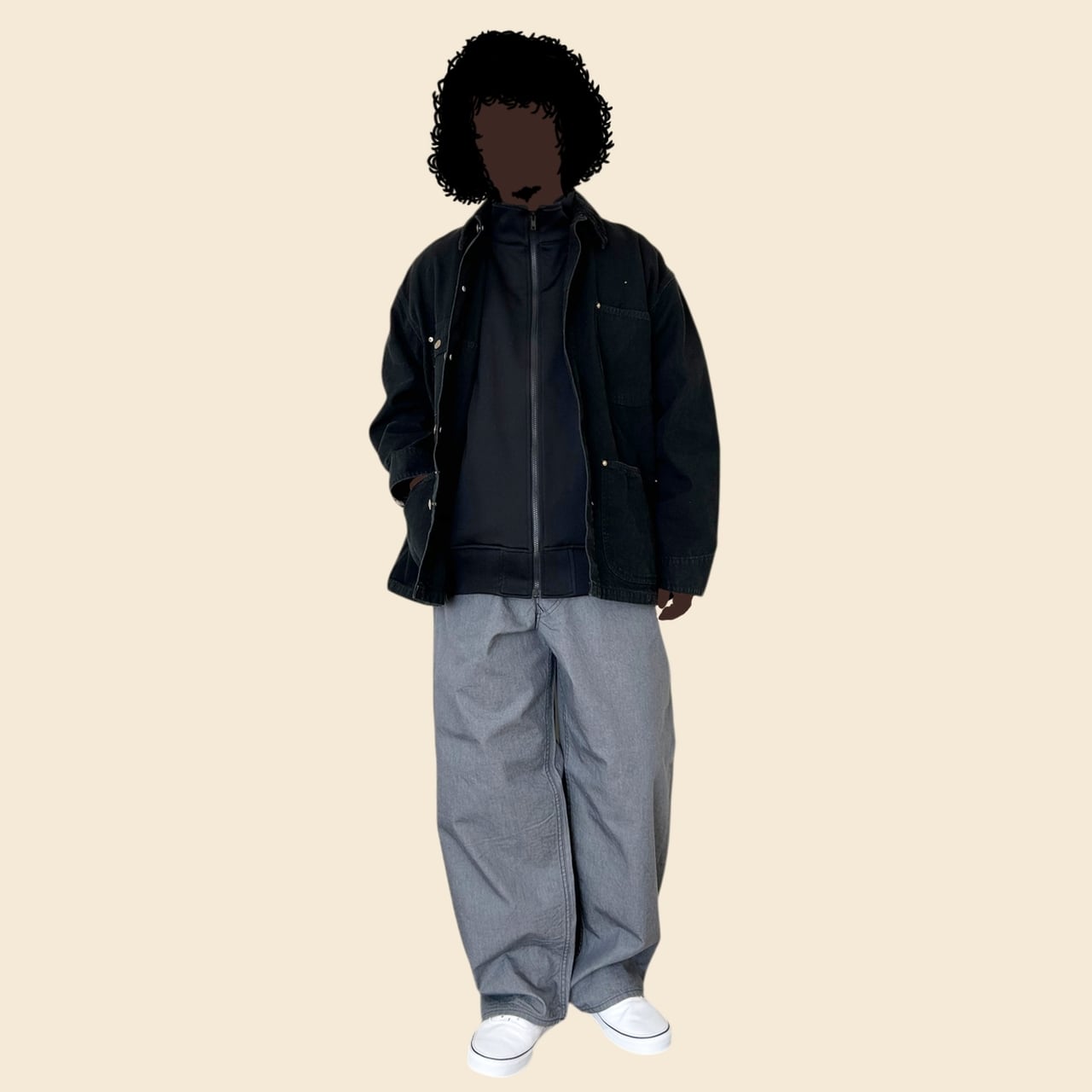 インディゴデニムとも異なるグレーの万能な色味がアウター、トップスの色選びをより楽にしてくれます。