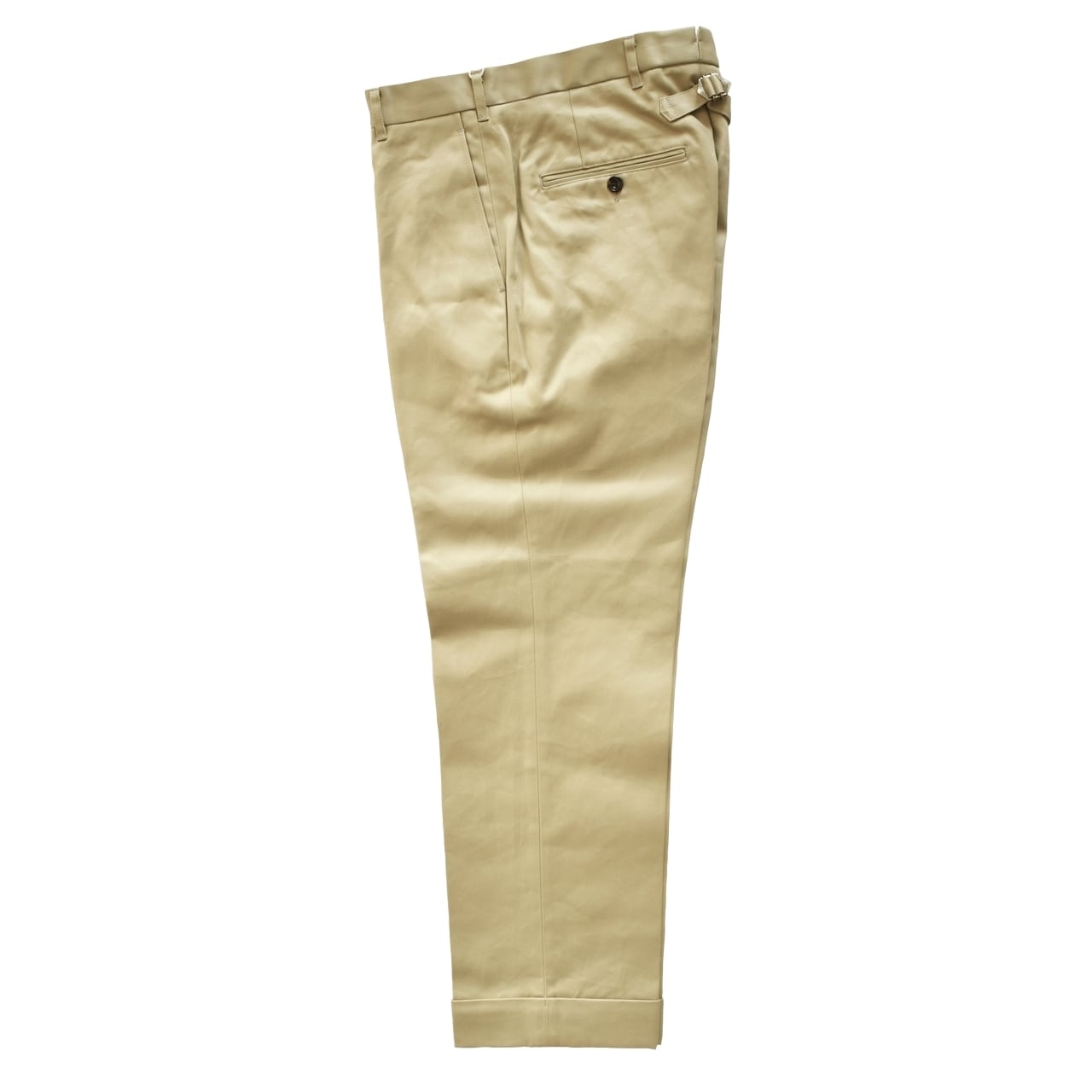 ややゆとりをもたせた腰まわりから足元へ向かってすっきりとテーパードするラインは流行に左右されない普遍的な美しさを宿しています。