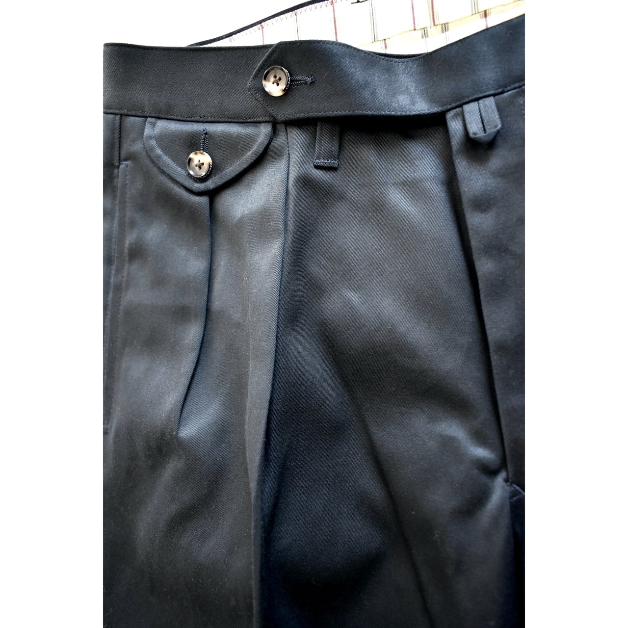 ビンテージ質なカーキの色目、深いネイビー、シルエットもやや太めにテーパードさせました。