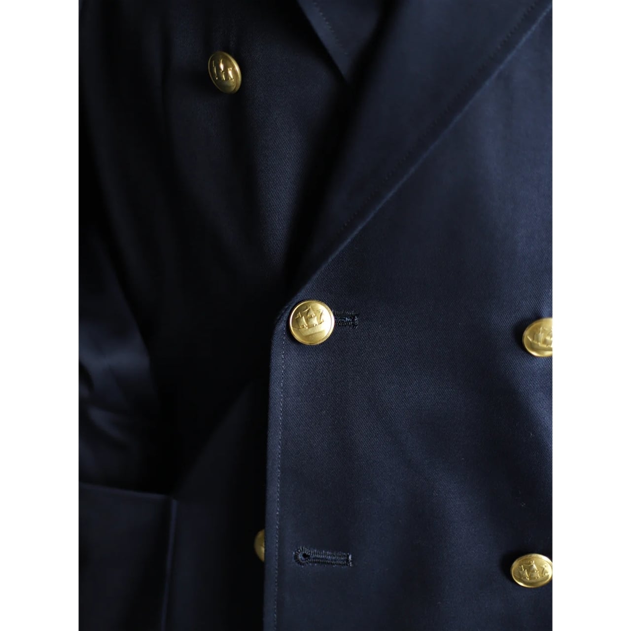 ウール素材のような華美さが強いジャケットはどうしても普段使いには難しさがあるかもしれませんが、本作"West Point Blazer Double Breasted"ではコットンを用いたウエポン素材を採用することで程よいハリや光沢感を持ちながらも、経年変化によるカジュアルな風合いを楽しめる“日常使いできるダブルブレストブレザー”を目指しました。