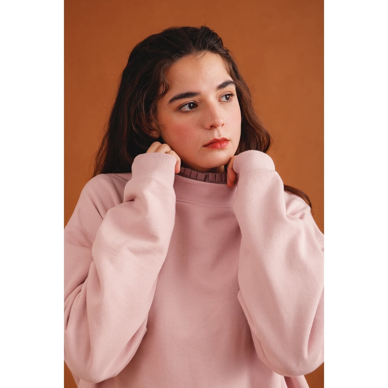 いつものクルーネックに少しアレンジを加え少し立ち上がったモックネックの様でかなり太めのネックリブが良いアクセント。