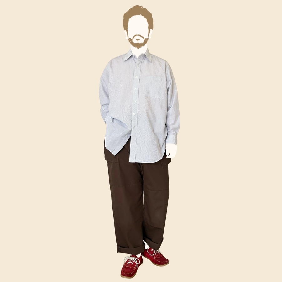 サラッとした素材感のコットン100%のブロードストライプ生地を使用し、やや凹凸感の出やすい素材で、強度があり、キレイ目にもカジュアルにも重宝します。