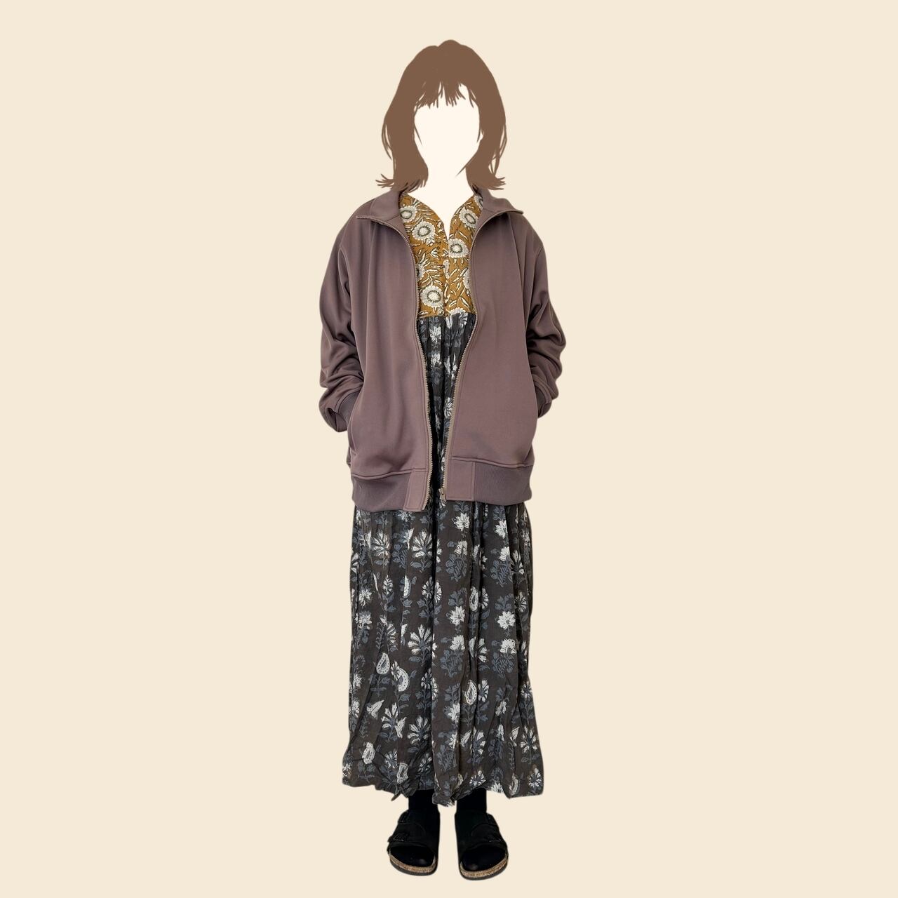 身幅はゆったりの着丈はやや短めのブルゾンタイプで同素材でボトムもありますのでセットアップも可能。