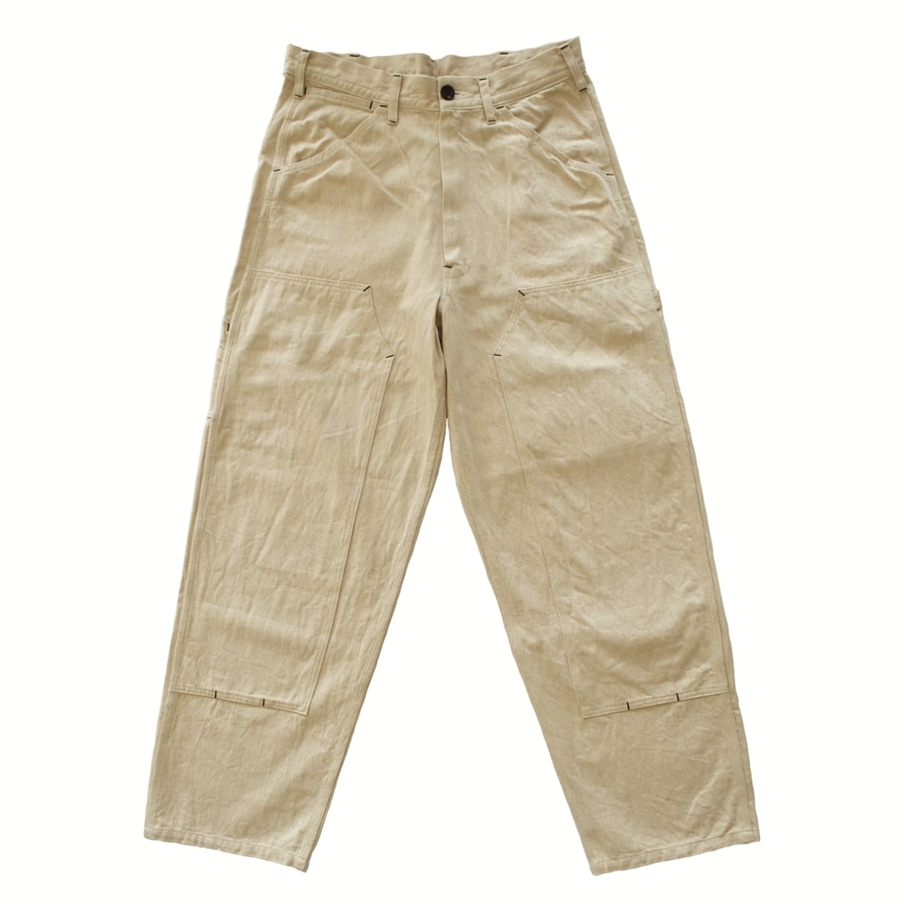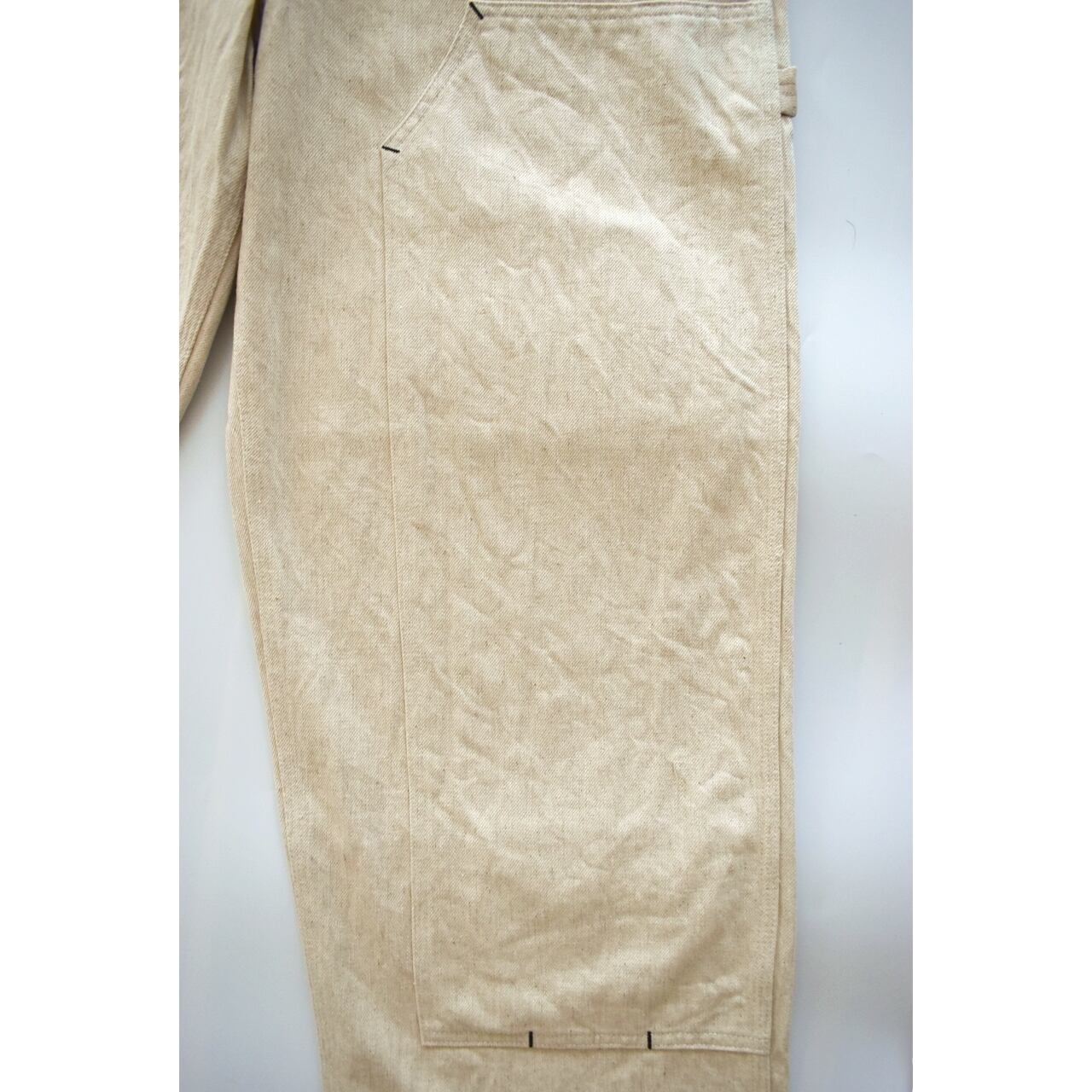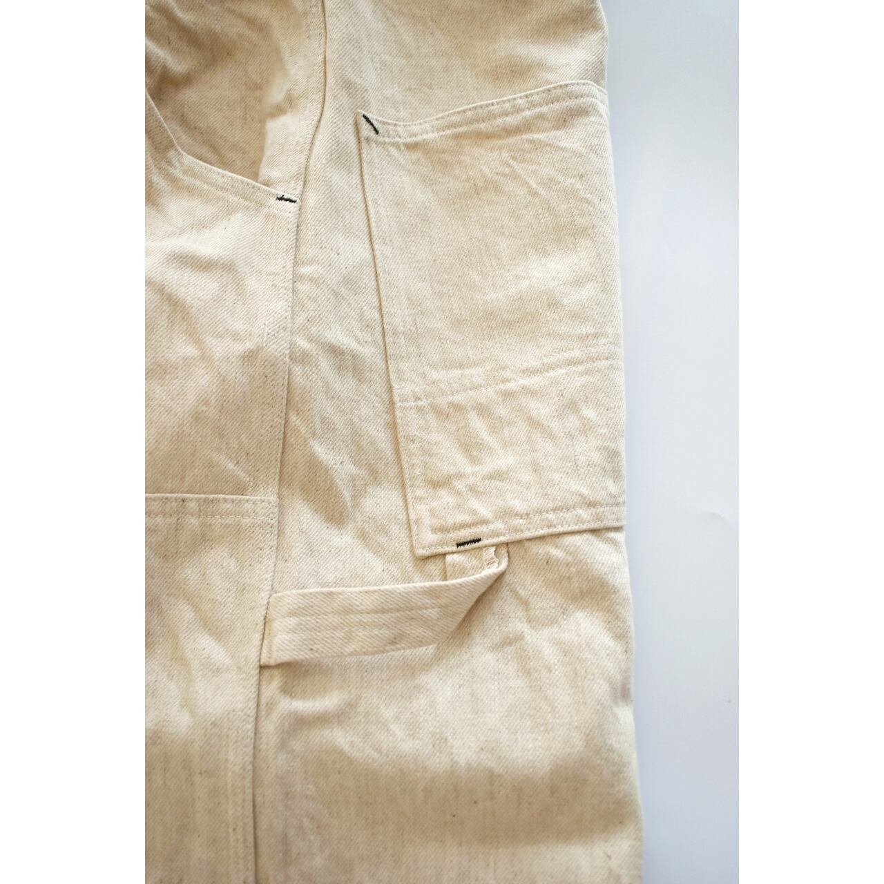 軽くてソフトタッチの10ozの綿麻ネップデニムを使用したダブルニー仕様のペインターパンツ。