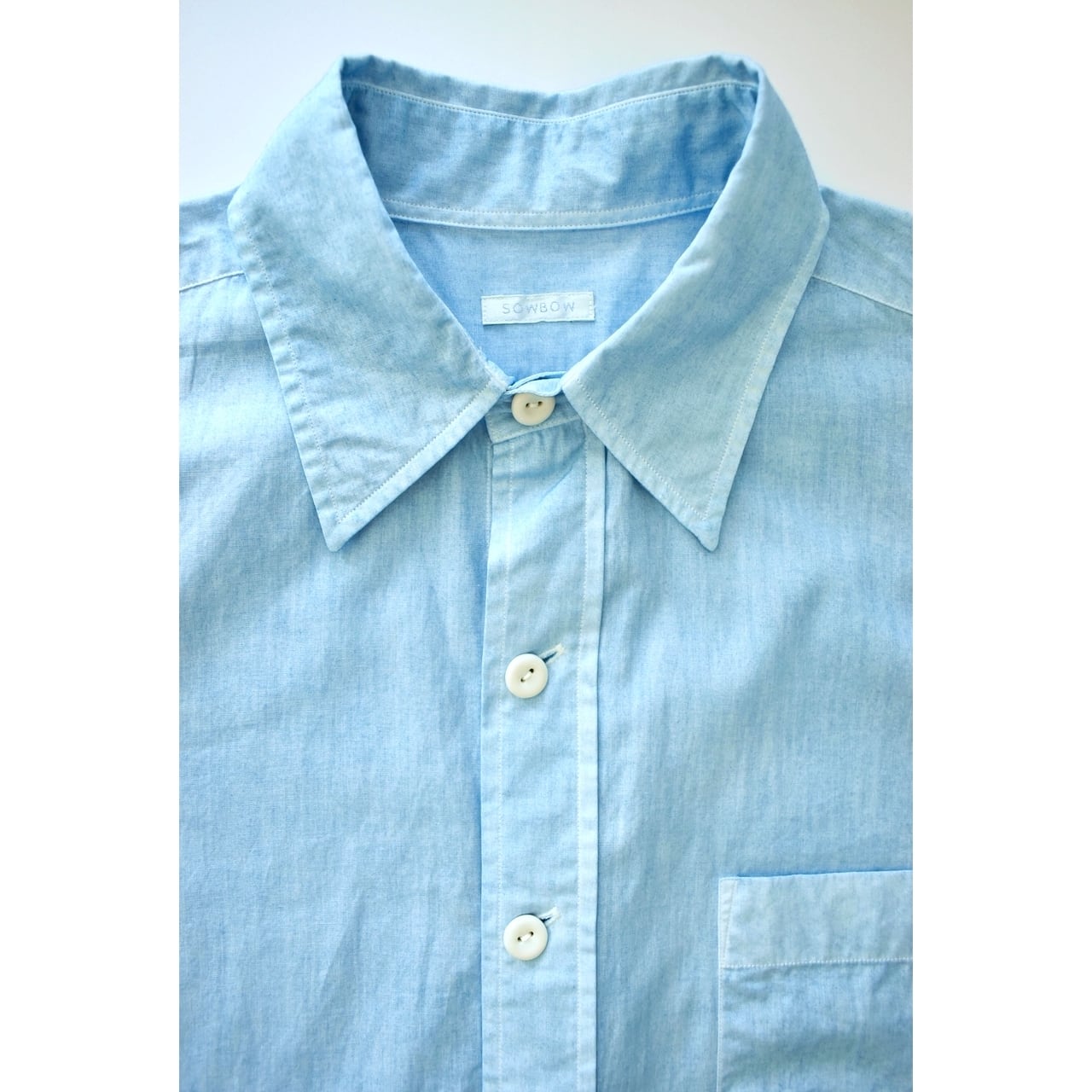 SOWBOW / 蒼氓シャツ G BROAD CLOTH INDIGO GARMENT DYE (FADE) - ソウボウシャツ G ブロード インディゴ製品染め (フェード) - SAX / ソウボウ