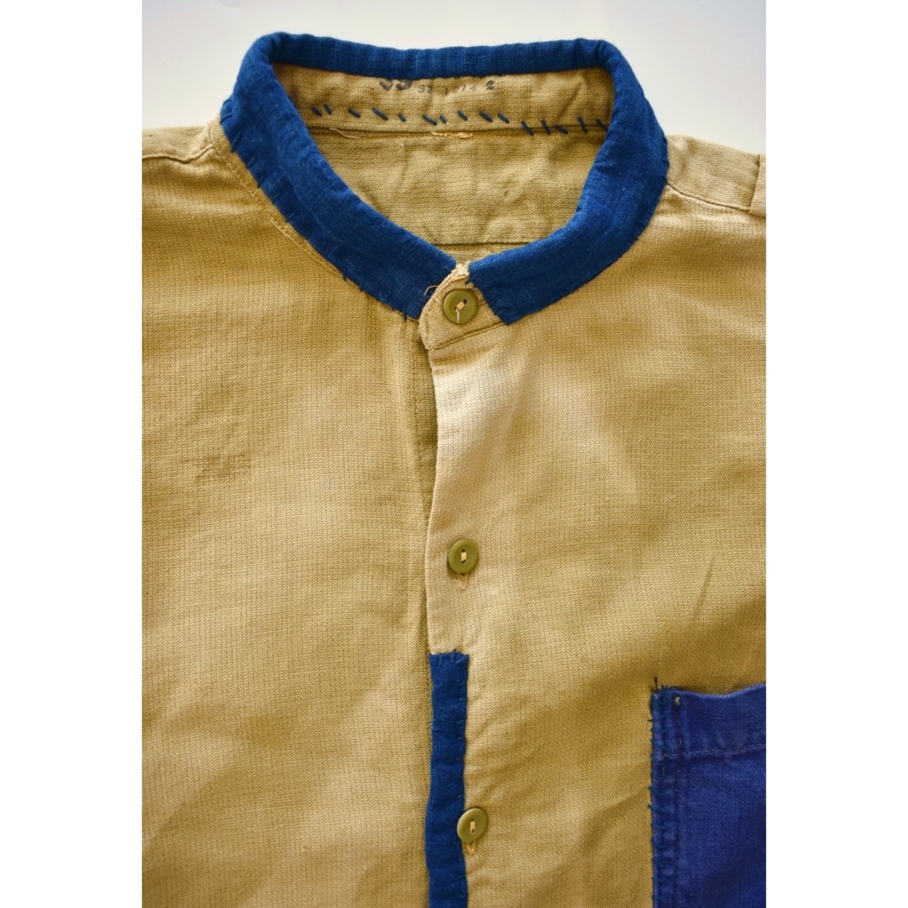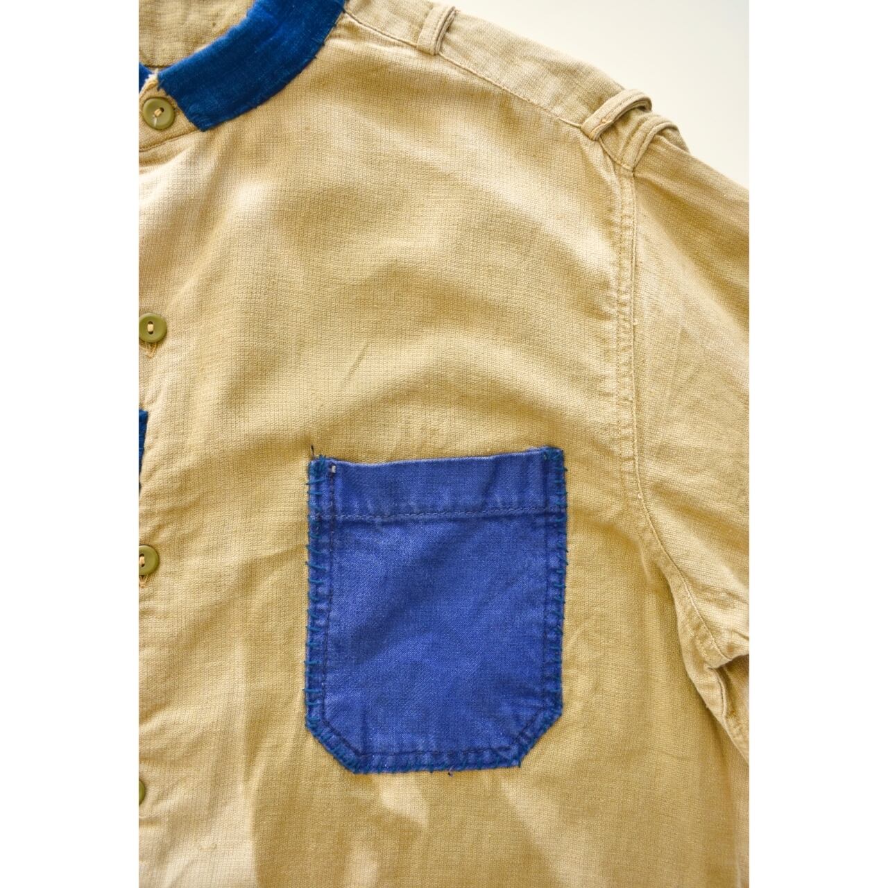 佐々木洋品店 / MITSUGU SASAKI パッチワークプルオーバーシャツ (with 藍染古布) - BROWN BEIGE - TOP-461 / ササキヨウヒンテン