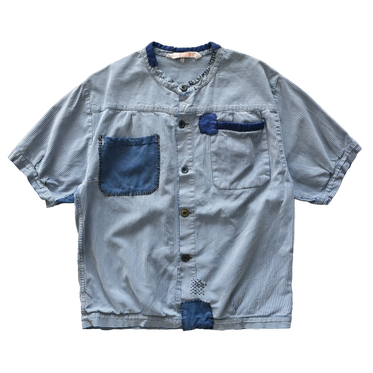 佐々木洋品店 / MITSUGU SASAKI パッチワーク ファーマーズワークシャツ - BLUE - TOP-446 / ササキヨウヒンテン