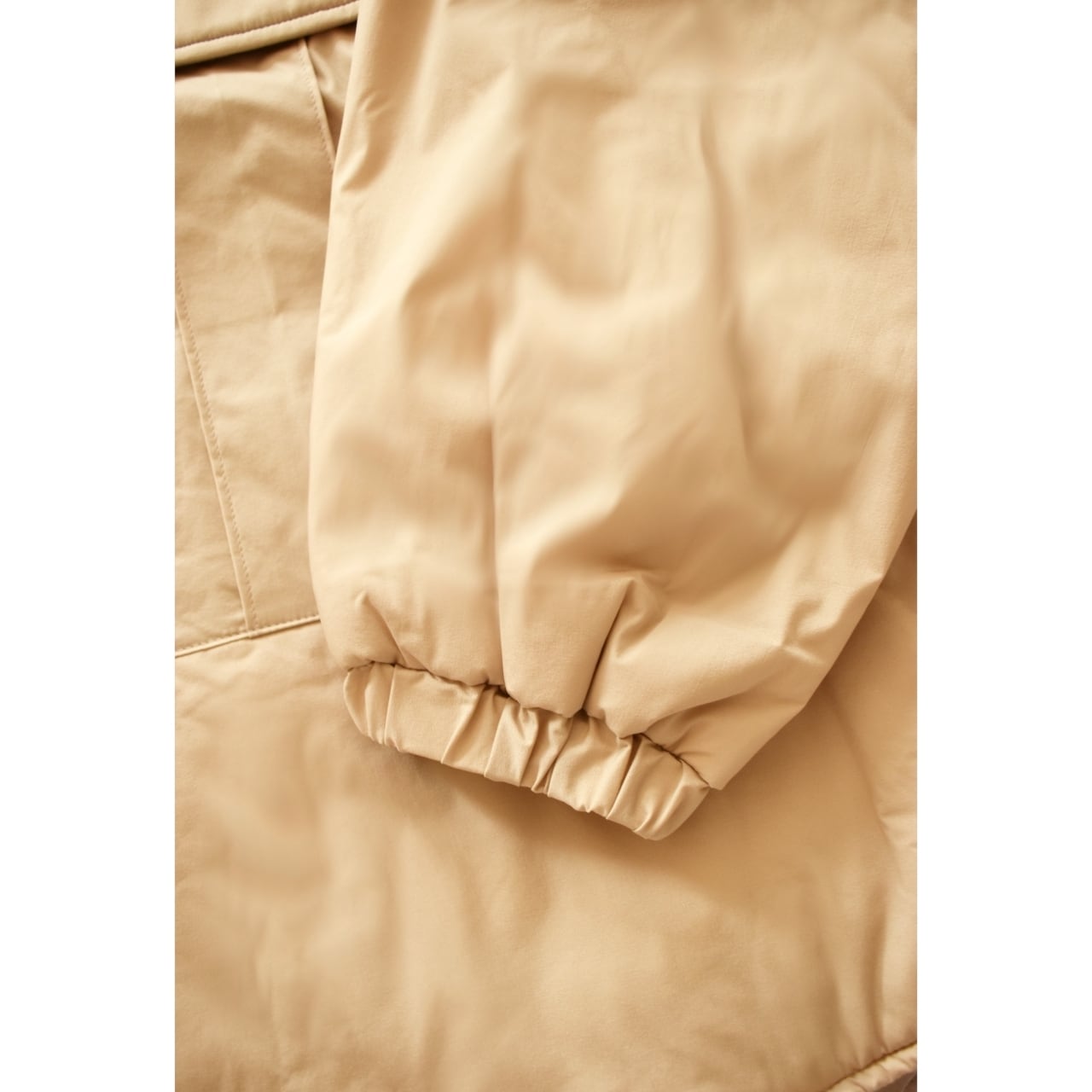 このパーカの中綿には、地球に優しい天然の木の実の繊維「カポック」をブレンドした「カポックダウン」が使用されています。カポックは、農薬や水資源の負荷を最小限に抑えて栽培されるため、エシカルな素材として注目を集めています。繊維の中心が空洞という特性のおかげで、コットンの約8分の1という驚きの軽さながら、高い保温性を発揮します。また、表地には撥水加工が施されており、急な小雨にも対応可能。