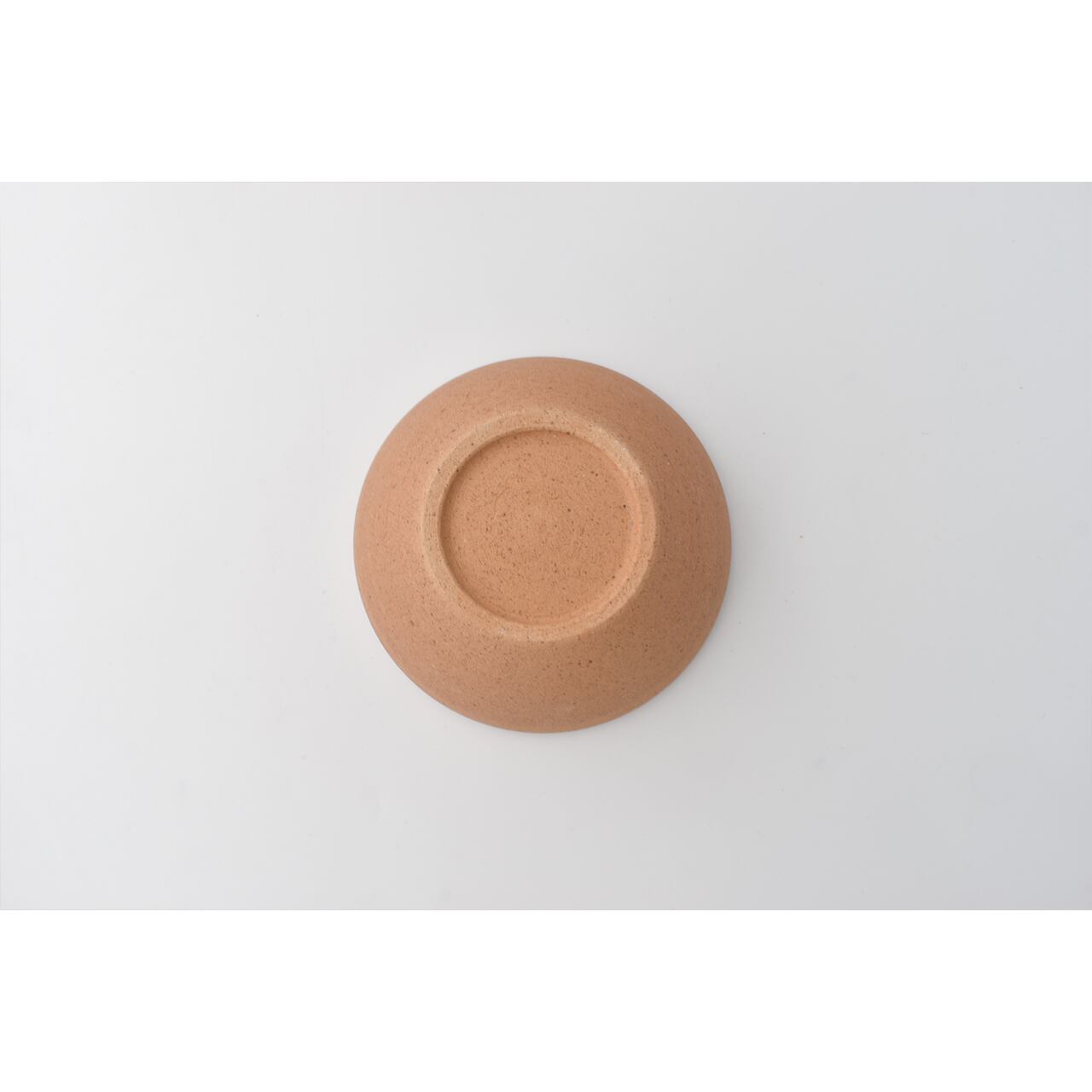 ぽってりとした丸みのあるボウル。外側が釉薬がかかっていない焼き締めなので、