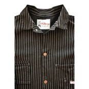 そのコートに今回使われたこの「Black Wabash(ブラックウォバッシュ)」生地は、シックな黒の生地に、抜染(ばっせん)によるドット柄が施されたワークウェアの伝統生地。でありながら、どこか洗練された雰囲気を持っています。