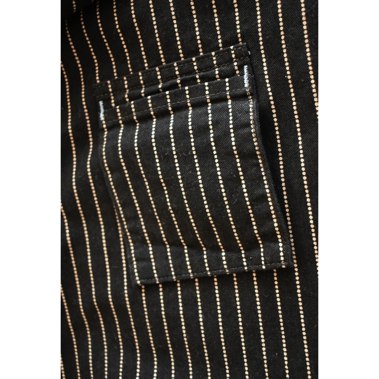 武骨なワークウェアのルーツを持ったデザインながらも、ブラックウォバッシュの生地感がカジュアル過ぎない大人の印象を与えてくれるため、秋冬の着こなしに深みと個性をプラスしてくれるはずです。