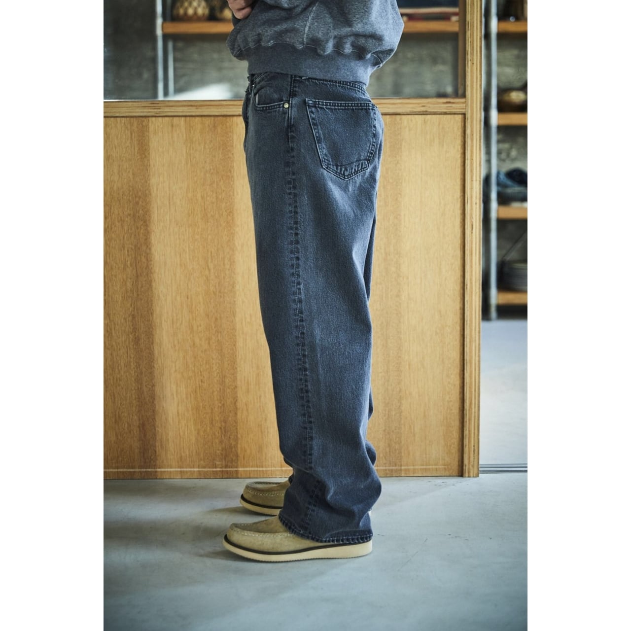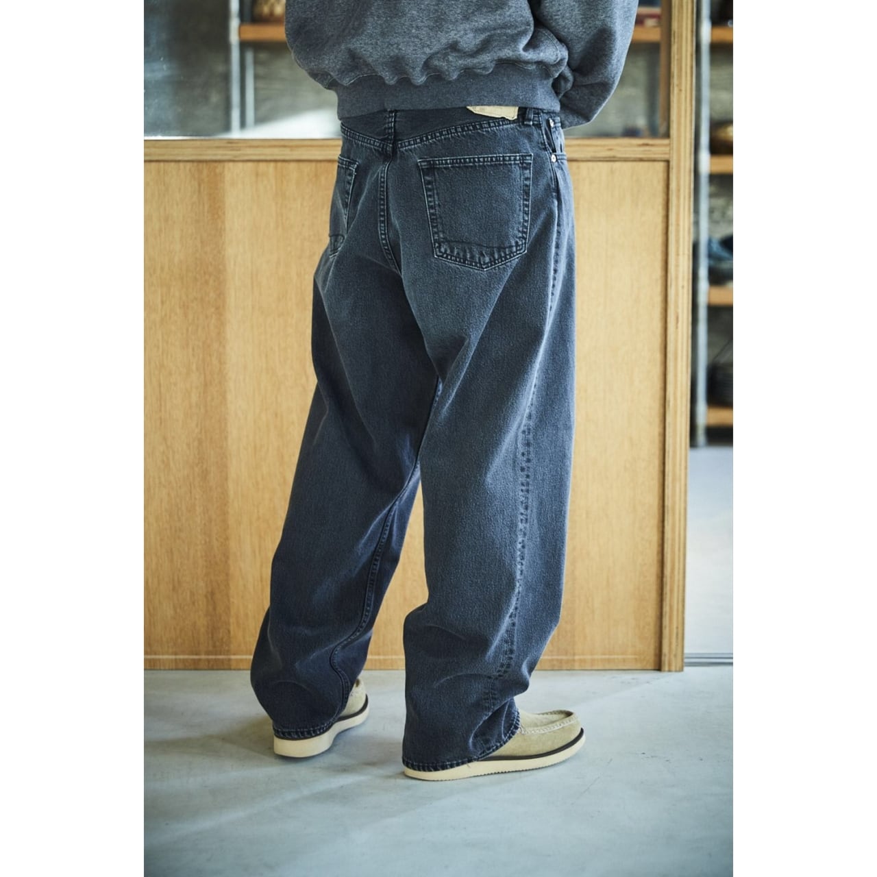 厚すぎず薄すぎない12.5オンスの生地を採用。ブラックデニム特有の都会的なクールさと、穿き込むほどに表情を変えていく経年変化を同時に楽しめます。