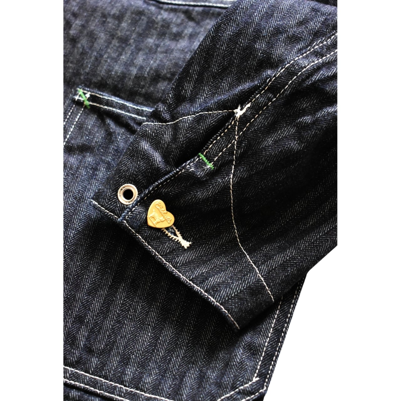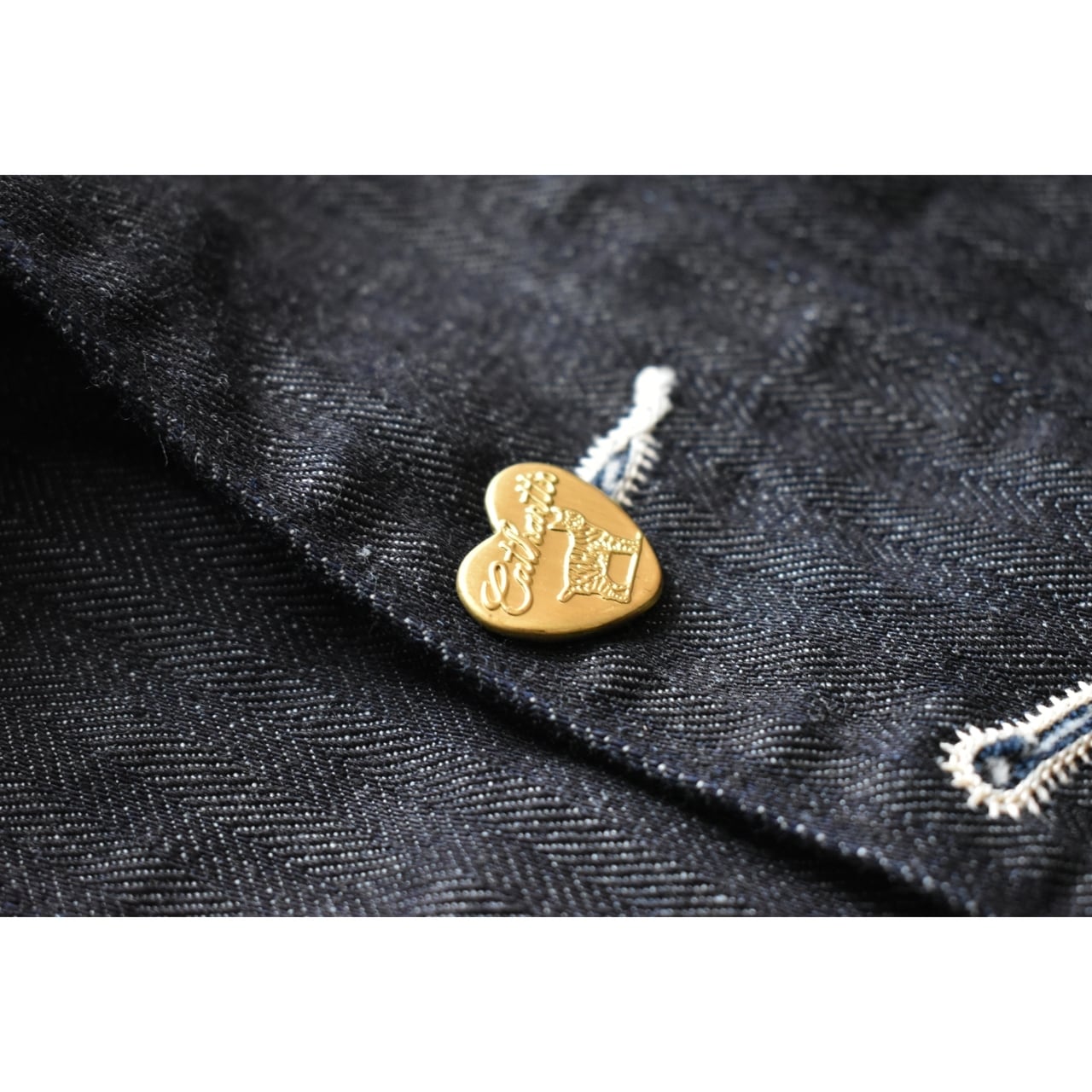 このモデルに使用されているのはインディゴヘリンボーンデニム生地になります。