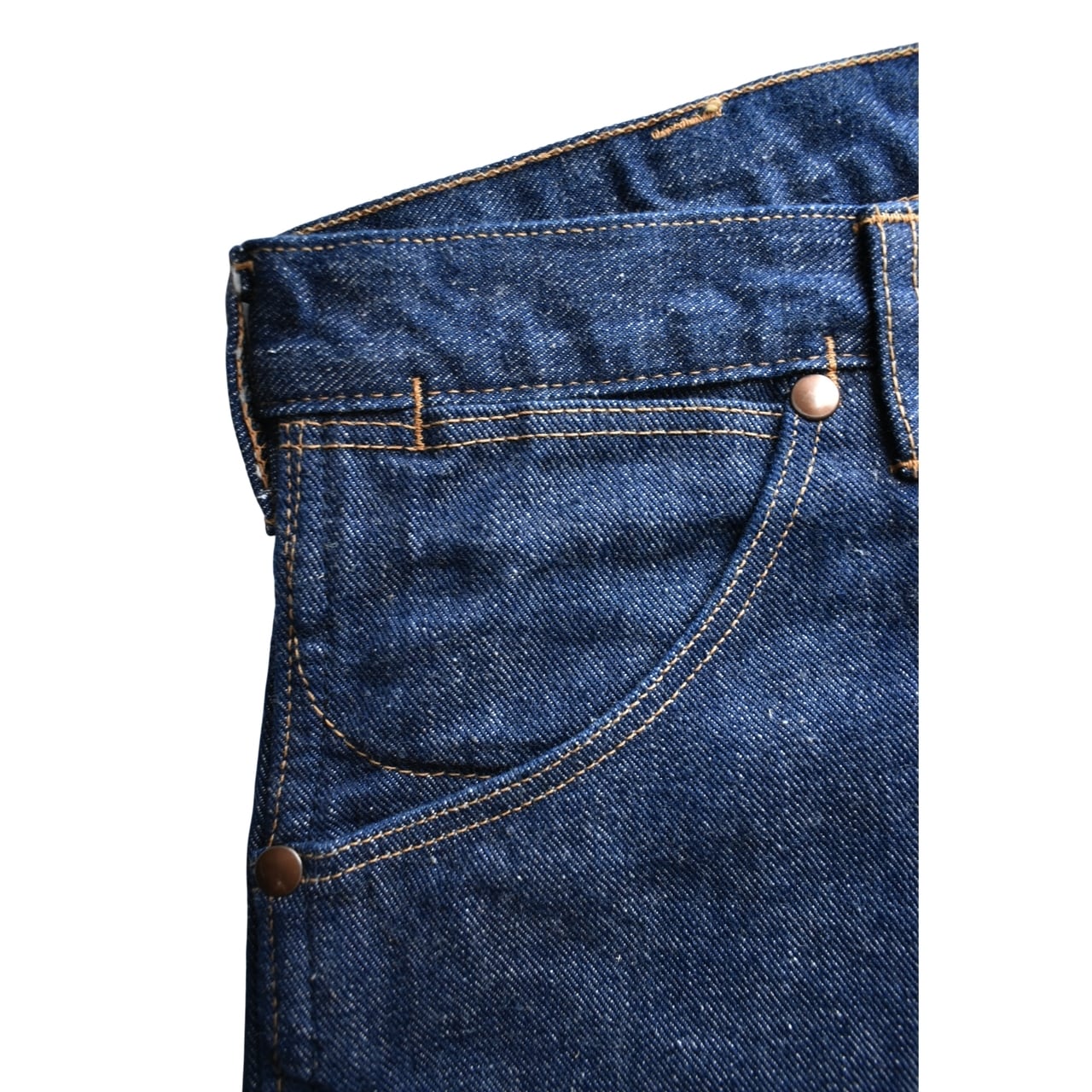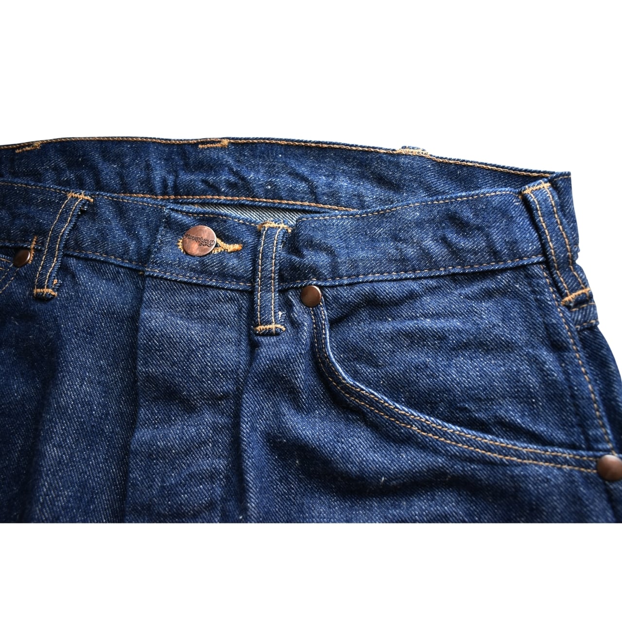 各所に多用された巻き縫いが織りなすパッカリングと、リーバイス系とは一線を画す「男前感」を存分にお楽しみいただける一本です。
