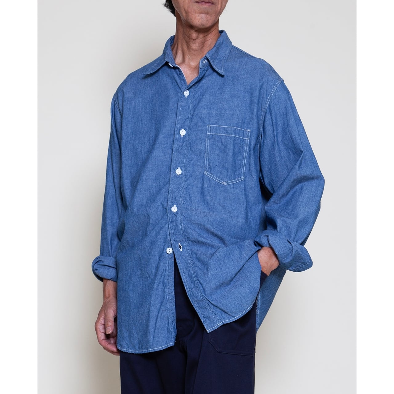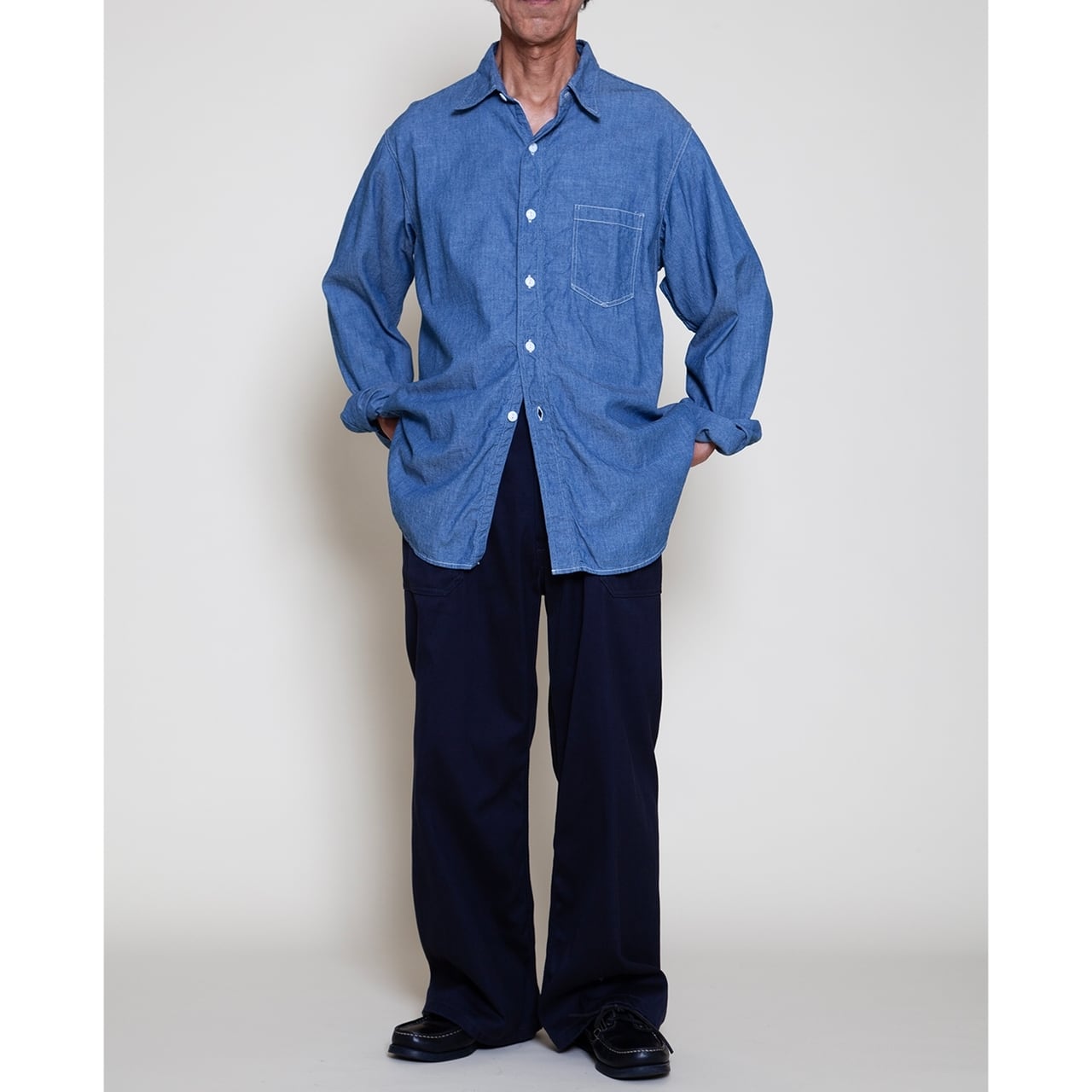 NAVY 1POCKET SHIRT Chambray - NAVY 1ポケットシャツ