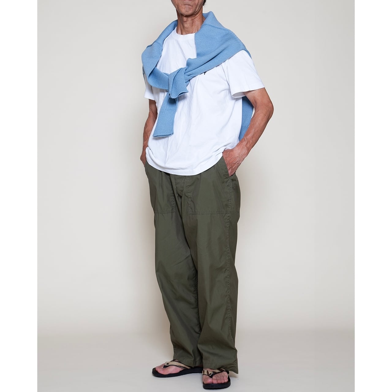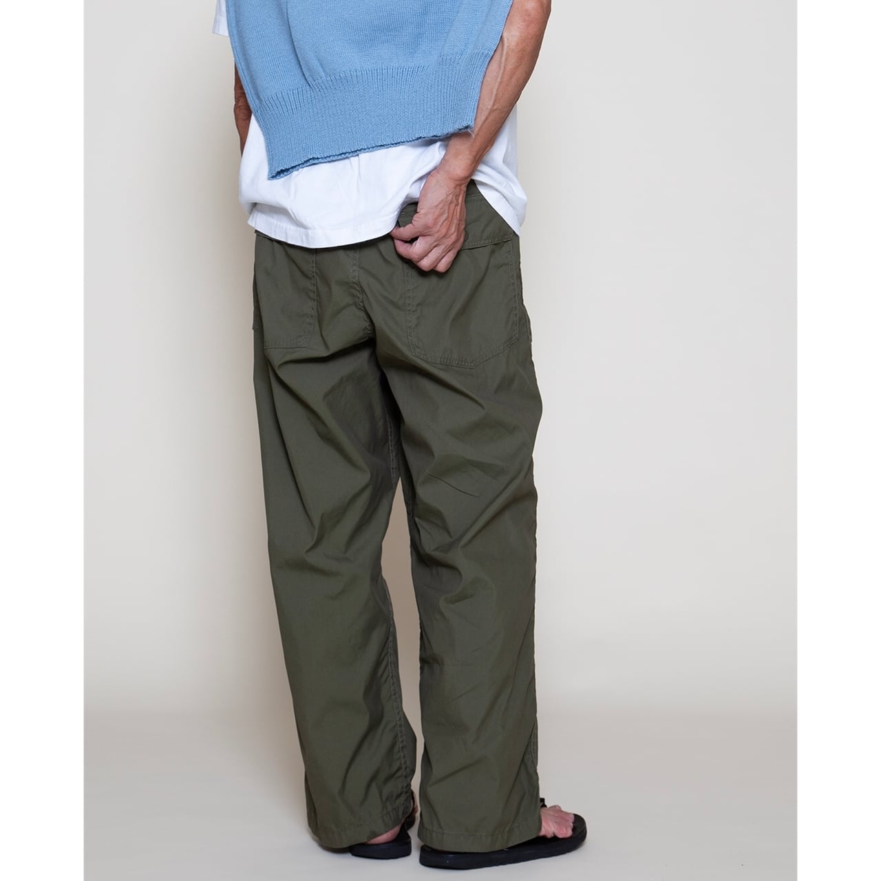 ウエストバンドと前後に4つの大きなパッチポケットを備えた、究極にベーシックなミリタリートラウザーズです。1950年代のミリタリートラウザーズを彷彿とさせる、ゆったりとした腰回りと太めのストレートシルエットが特徴で、ミリタリーパンツでありながらワークパンツとしてのユーティリティ性も兼ね備えています。