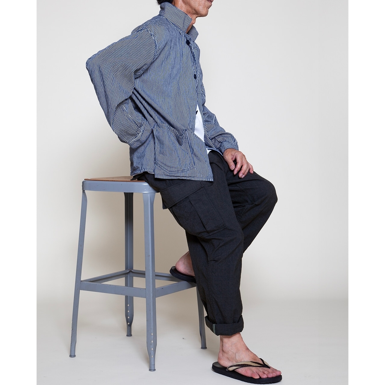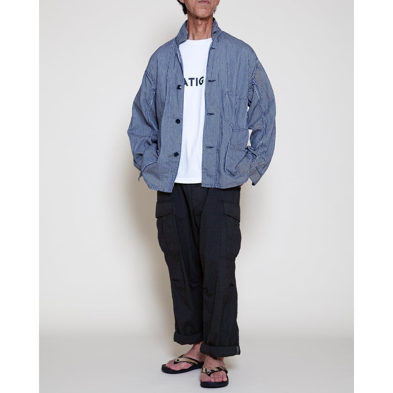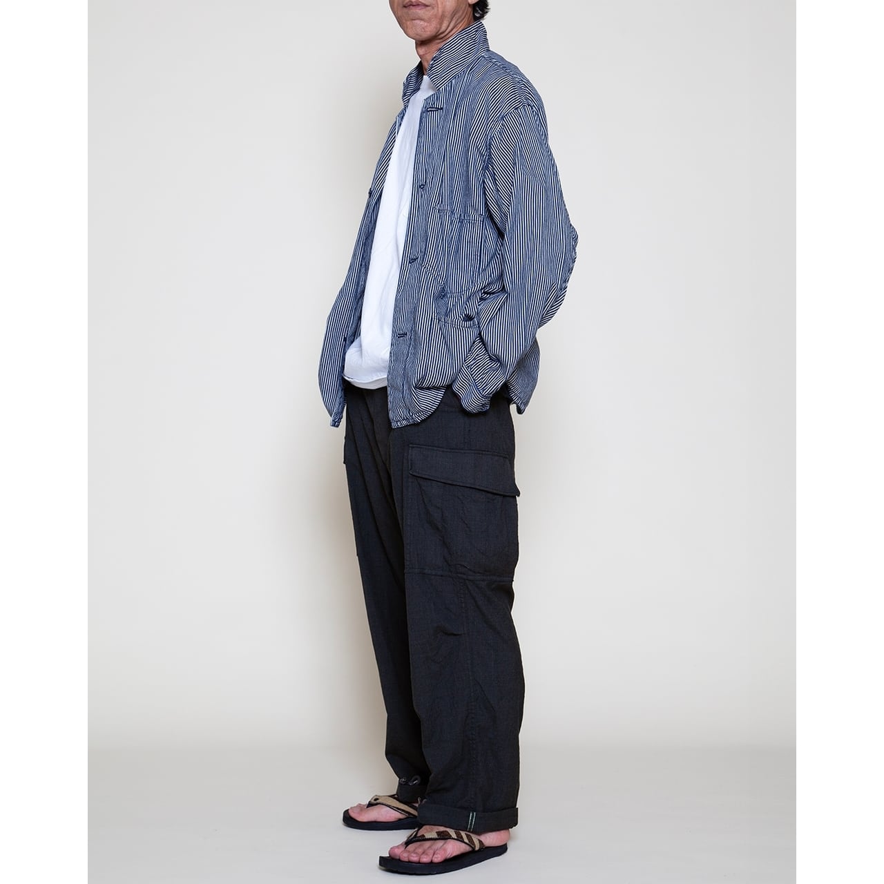 1960 年代ベトナム戦争で使用された米軍ジャングルファティーグパンツ(2nd モデル)に 着想を得た、ブランドのシグニチャーアイテムです。ジャングル戦を想定した軽量かつ 機能的な設計を継承し、ゆったりとしたシルエットと豊富なポケットが特徴。無駄を省いた