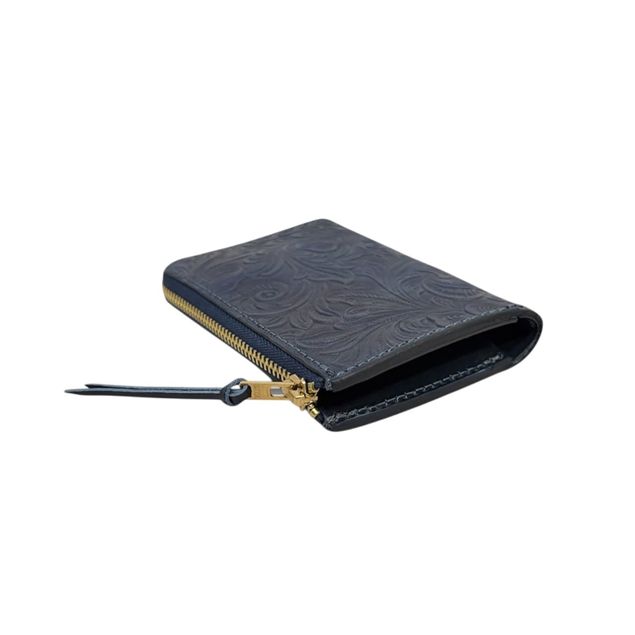 Indigo Flower L Zip Compact Wallet - 藍染レザー(フラワー) Lジップ コンパクトウォレット