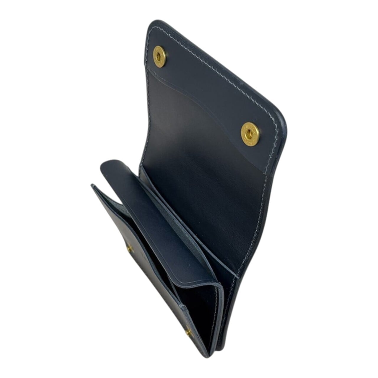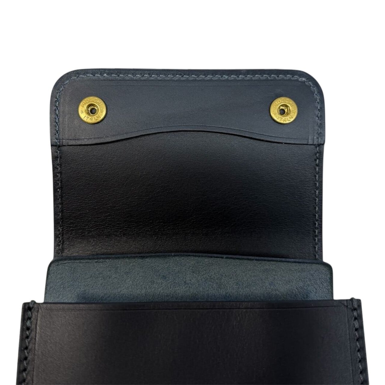 無駄な装飾を削ぎ落としたミニマルな外観ながら、内装は機能性を徹底追求。二つ折りの紙幣スペース、最大5枚のカードポケットに加え、マチ付きで深さのあるコインポケットを装備し、コンパクトながらも頼もしい収納力を誇ります。