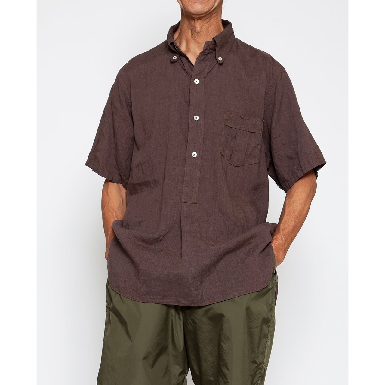 THE CORONA UTILITY / W.C.W SHIRT PULLOVER S/S French Linen Shirting - W.C.W シャツプルオーバー 半袖 フレンチリネン シャーティング - BROWN - CS005S-26-01 / ザ コロナユーティリティ