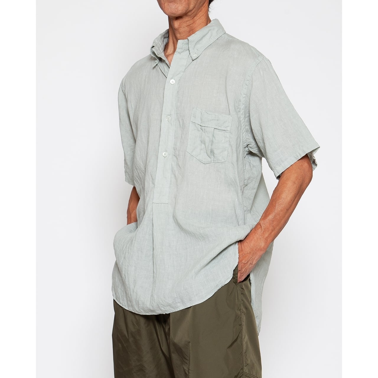 THE CORONA UTILITY / W.C.W SHIRT PULLOVER S/S French Linen Shirting - W.C.W シャツプルオーバー 半袖 フレンチリネン シャーティング - MINT GRAY - CS005S-26-03 / ザ コロナユーティリティ