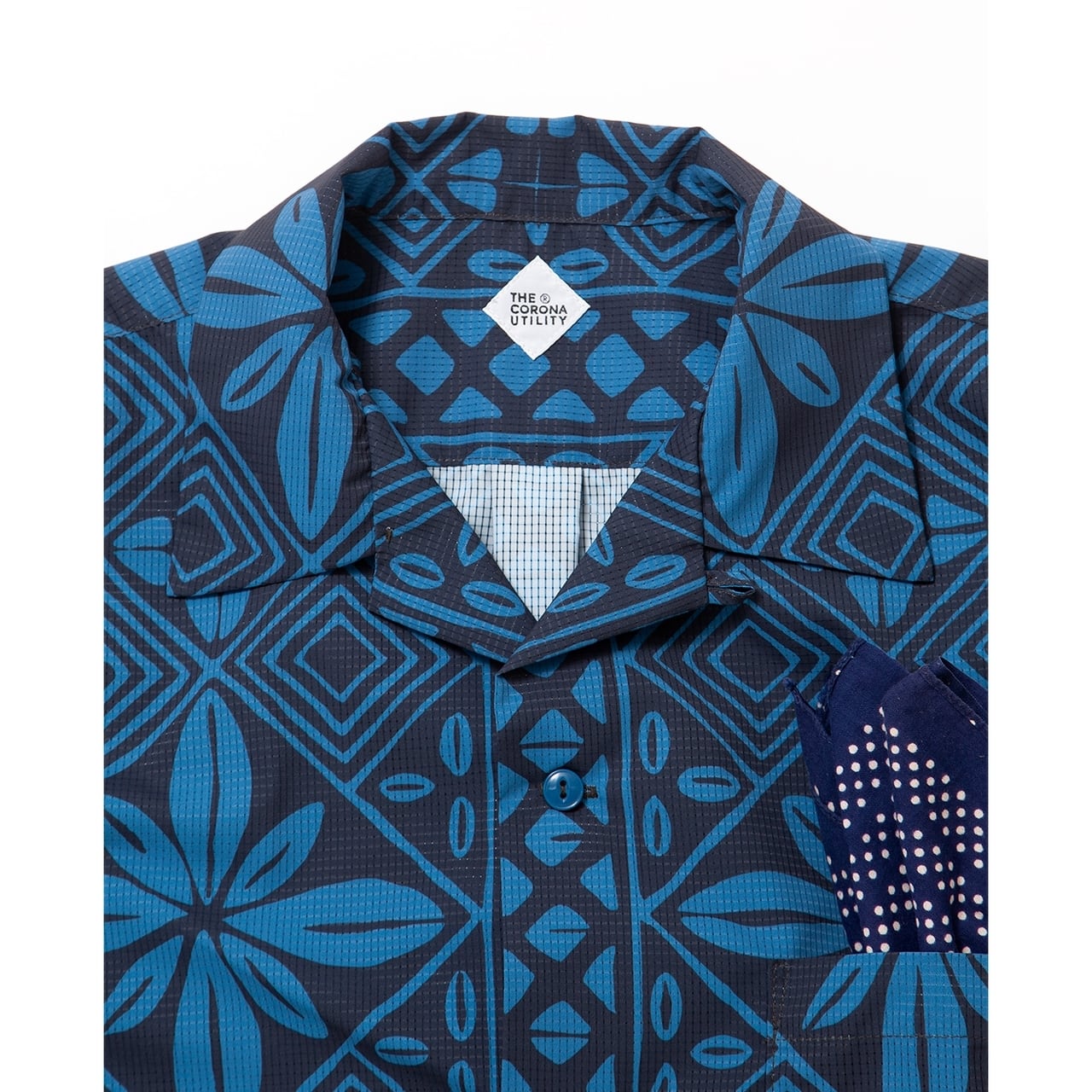左胸に配置されたシングルポケットが特徴の、CORONA定番オープンカラー半袖シャツ「フレンチカフェシャツ」。