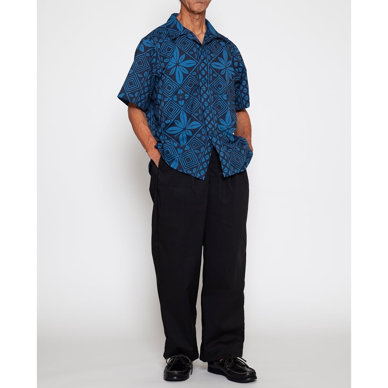 これは60年代のフランス映画に登場するシャツの柄を自社で模写したもので、アメリカのハワイアン柄とは一線を画す、イタリアのリゾート地を彷彿とさせる洗練されたムードが漂います。