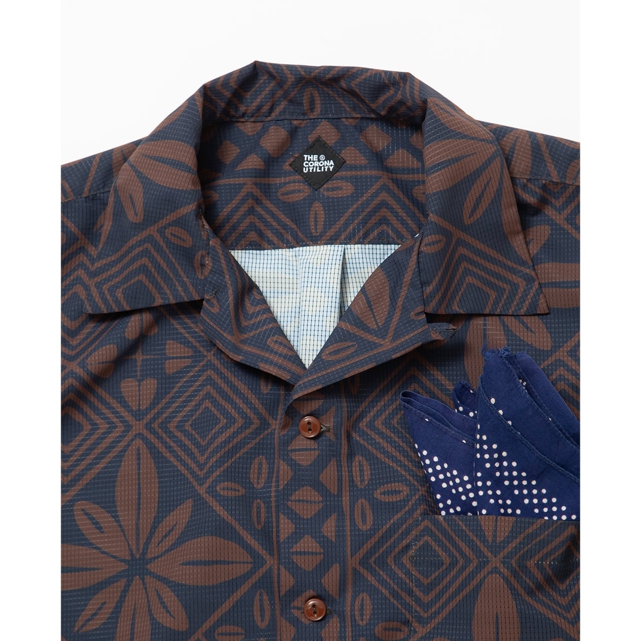 THE CORONA UTILITY / FRENCH CAFE SHIRT S/S Dot Air - フレンチカフェ シャツ 半袖 ドットエア - CHARCOAL GRAY × BROWN - CS097-26-02 / ザ コロナユーティリティ