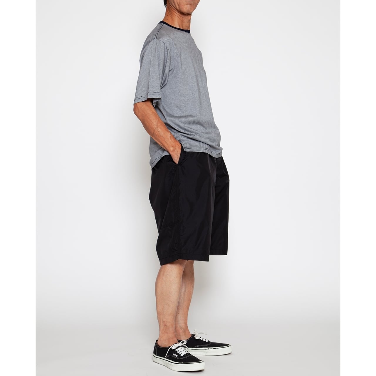 素材には、高密度に織り上げたナイロンタフタを採用。裏面にシレー加工を施すことで生まれた独特の風合いと、軽量かつ防風性に優れた機能性は、流行に左右されることなく長く愛用いただける、まさにベーシックを極めたショーツです。