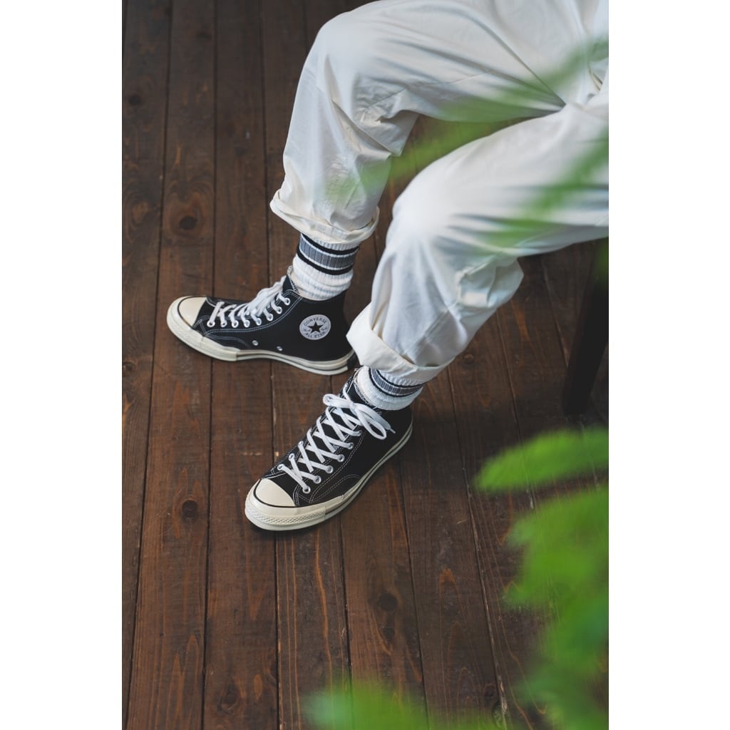 また本体の表糸には綿糸、裏糸にはナイロン糸を2本取りで使用し、履き口には通常より太いゴムを使用することでしっかりとしたホールド感がある耐久性にも優れたソックスに仕上げています。